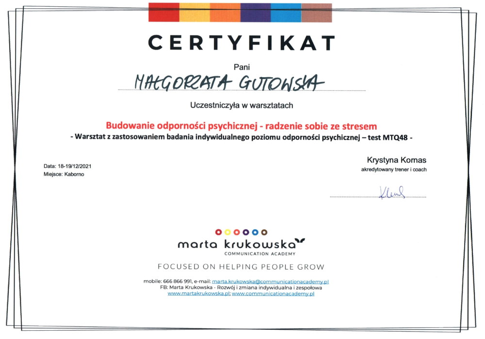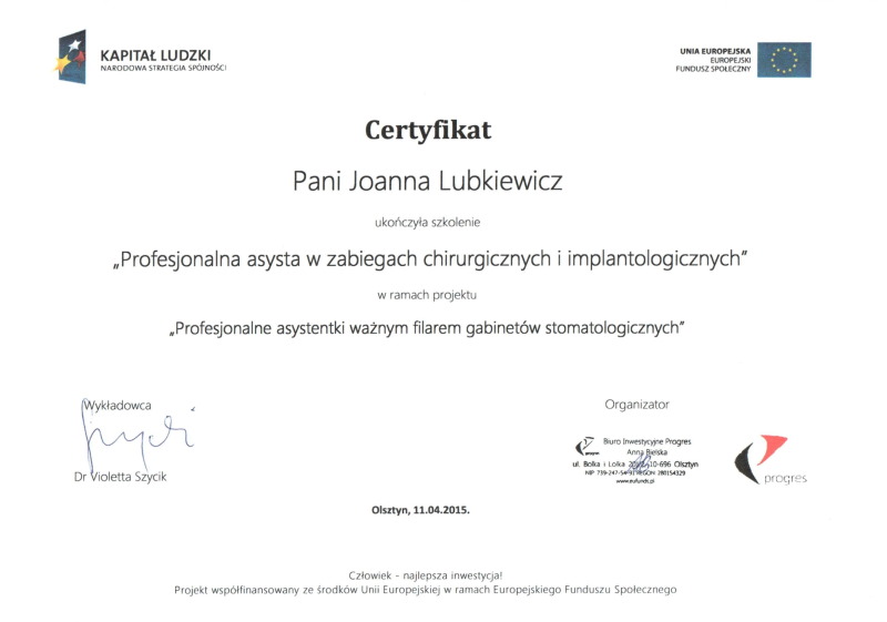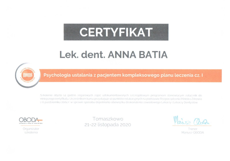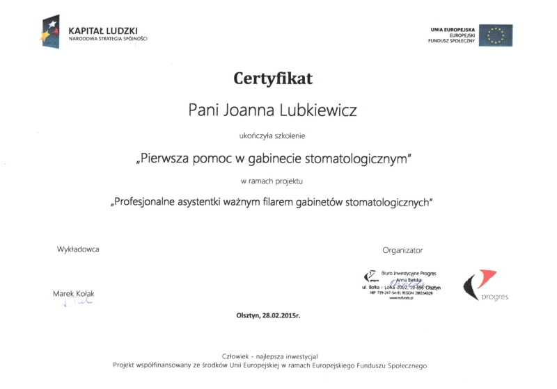 Możemy pochwalić się doświadczeniem oraz udziałem w licznych szkoleniach w kraju i za granicą, jak również członkostwem w kilku prestiżowych organizacjach zawodowych.